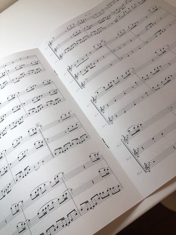 16分音符が細かく舞い、切なげなメロディーが心を打ちます。フルート3重奏というシンプルな編成ですので、伴奏の16分音符は決して慌てることなく厳密なテンポキープを心がけてください。後半のブレイクをどう扱うか、センスの発揮のしどころです。