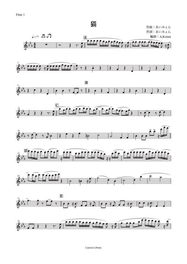 スラー等アーティキュレーションは歌詞に準じてあります。強弱記号はあえてつけておりません。奏者の皆さまの感性と歌心で様々な演奏を楽しんでいただければと思います。