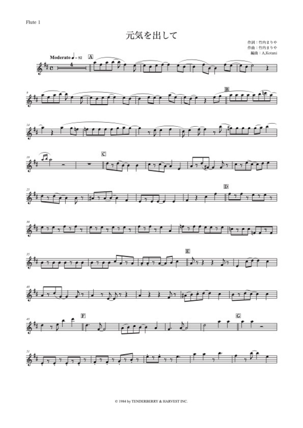 アーティキュレーションは歌詞に準じて付けてあります。強弱記号は敢えて付けておりません。奏者の皆さまの感性と歌心で様々な演奏を楽しんでいただければと思います。